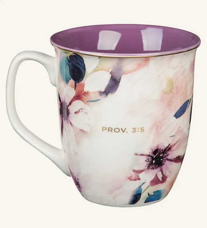 Bakside: Blomsterdetaljer rundet teksten «Prov. 3:5».
